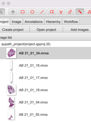 Drag and drop the .mrxs file for each image into the QuPath Image list.
